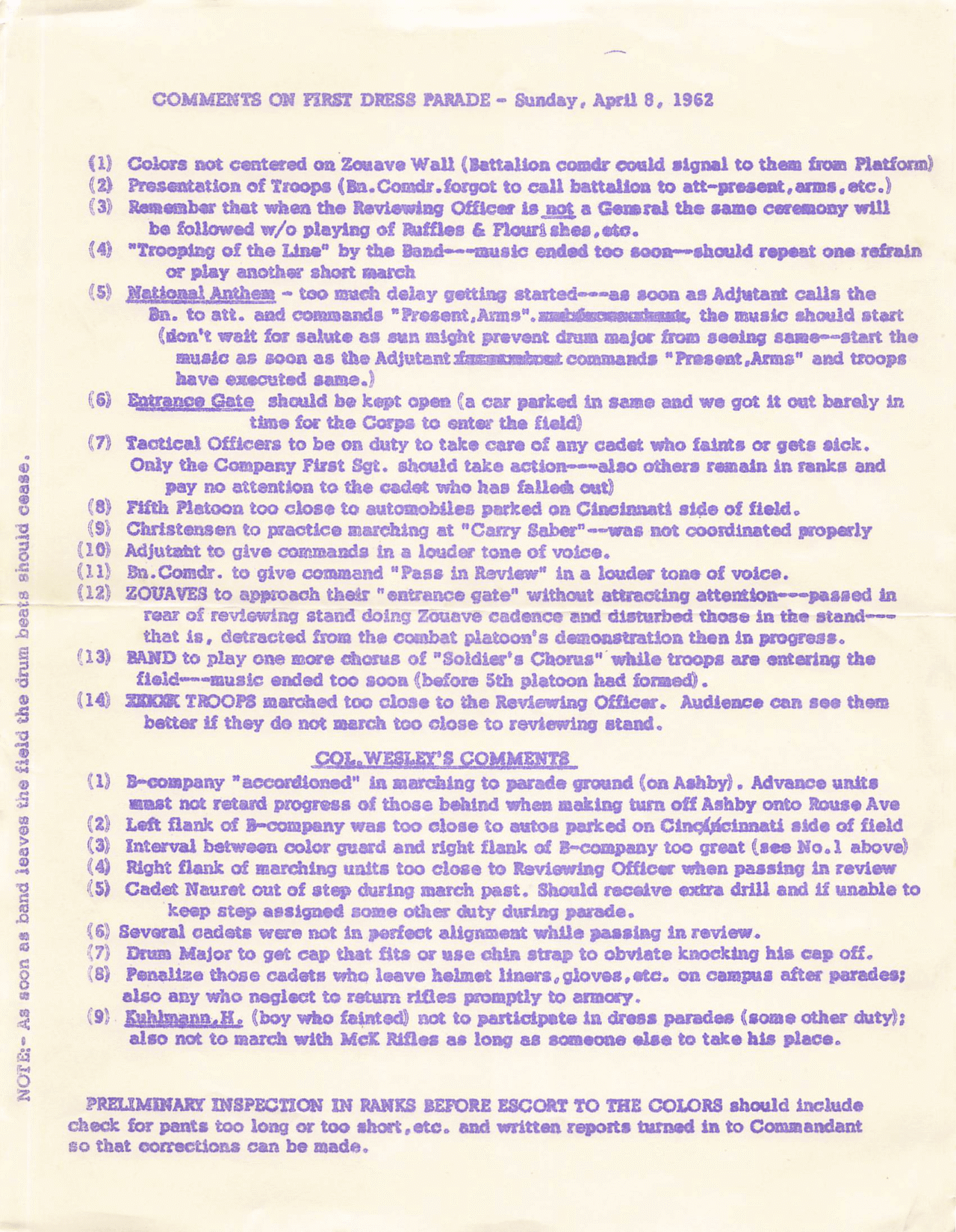 Formal Reviews-Dress Parade 1966 (Miscaptioned 1973)