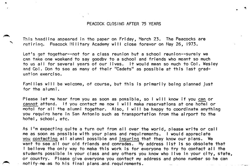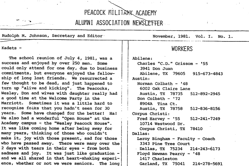 Peacock Military Academy Alumni Association